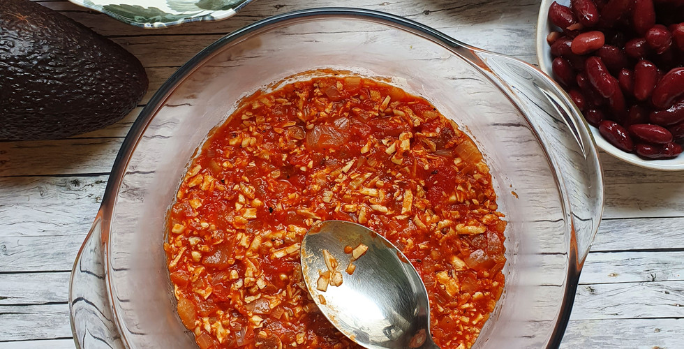 Sobald das Tofu-hack etwas abgekühlt ist, kann der Salt geschichtet werden.