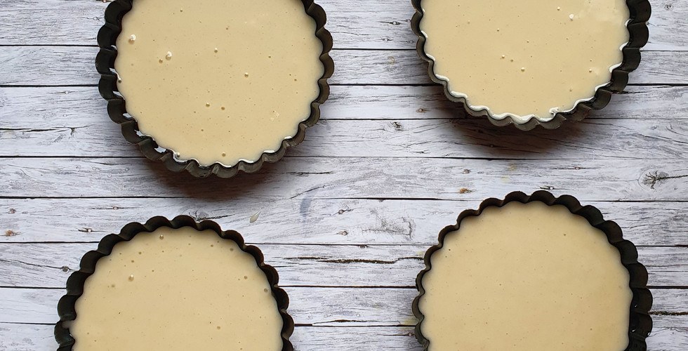 Zu Beginn werden die Biskuitböden zubereitet. Dazu werden Mehl, Zucker, Backpulver und Vanillezucker in einer Schüssel verrührt. Nun werden Wasser und Öl eingerührt. Wenn sich der Teig zu einer glatten Masse verbunden hat, kann er auf die Förmchen aufgeteilt werden (ca. 2 EL pro Förmchen). So kommen die Tartelettes für ca. 25 Minuten bei 180° Ober-,Unterhitze in den Ofen. (Der Ofen braucht nicht vorgeheizt werden.)